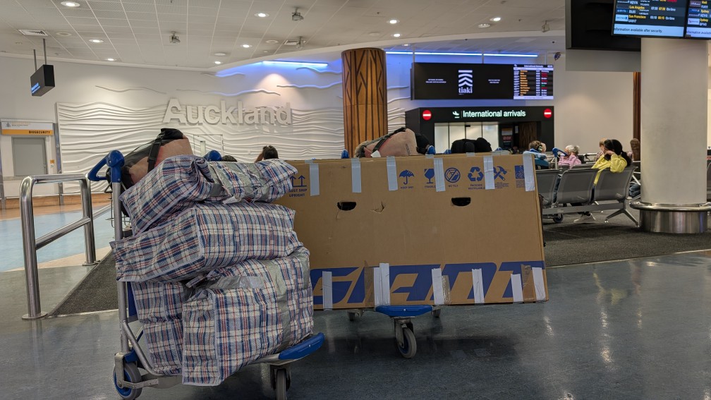 Since no cruise ship was sailing from Cairns to Auckland at the time ;-), we chose the air route and flew to the North Island via Brisbane. After immigration was completed in a few minutes with a passport scan and facial recognition, and we shortly thereafter had our luggage together, we faced questions from a biosecurity officer. He also wanted to see our clean shoe soles, after which we had to hand over our tent – ​​fortunately freshly laundered – to a whole team of friendly officers for laboratory testing.