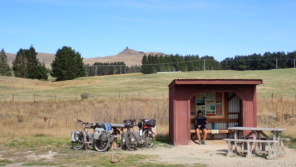 This was the beginning of an inland route that would take us 400 kilometers to Dunedin, the second-largest city on the South Island. We chose this route because it allowed us to take advantage of two of the 23 Great Rides that New Zealand offers for cyclists. Both Great Rides, the Clutha Gold Trail and the Otago Central Rail Trail, follow the routes of former railway lines and were therefore perfectly suited for our fully loaded bikes.